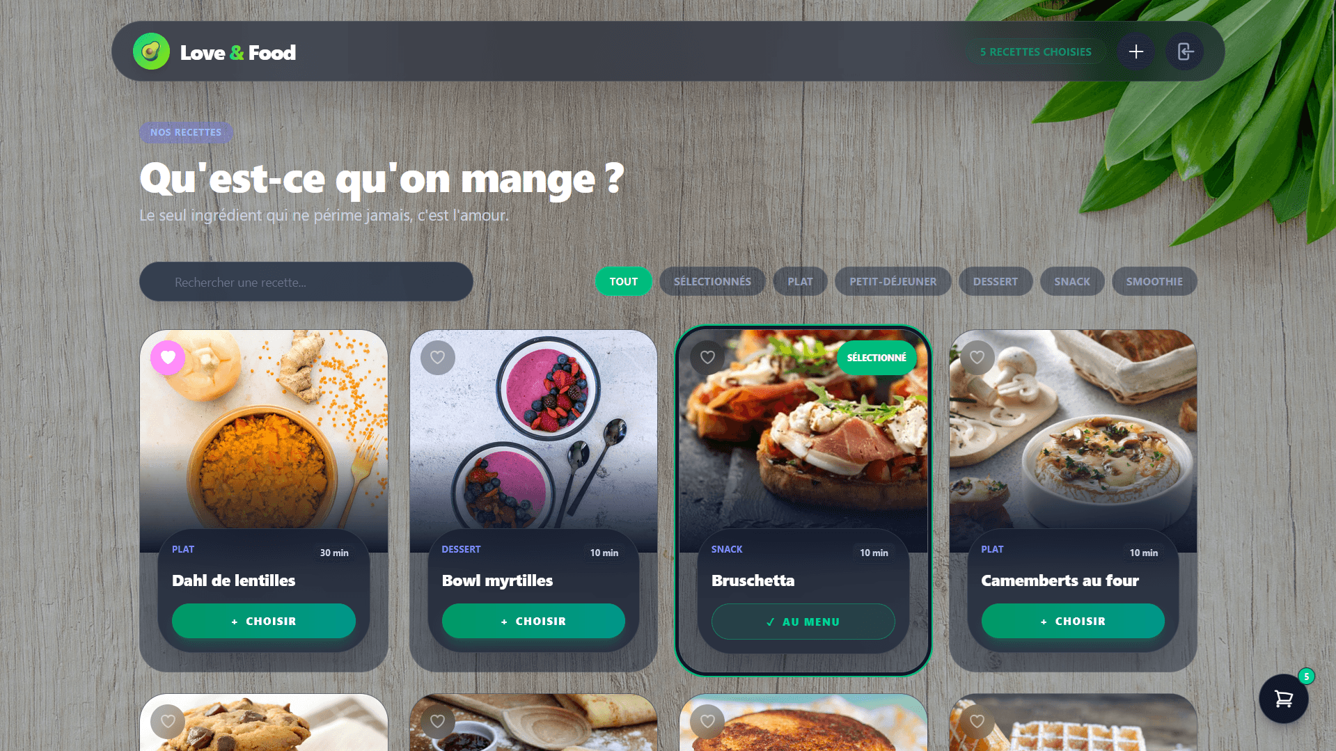 Pour répondre à ce besoin d'optimisation, nous avons d'abord défini le périmètre fonctionnel (brainstorming) puis j'ai modélisé l'architecture de l'application. La solution développée permet désormais de créer une base de données de recettes et de composer notre menu hebdomadaire en quelques clics. L'application se charge ensuite de la partie logistique en convertissant automatiquement ce planning en une liste de courses.